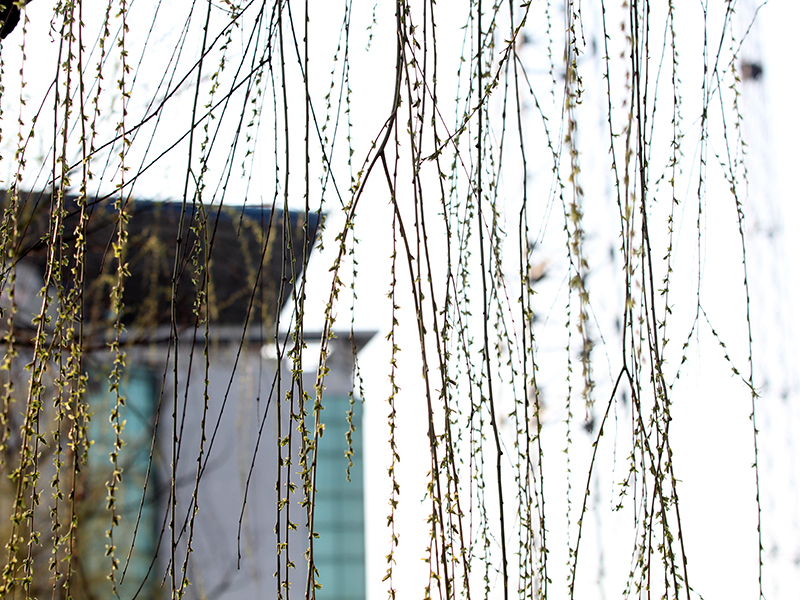 暖暖春風(fēng)撫柳而來,攬得生靈陶醉。初春之際,不如趁復(fù)蘇的預(yù)備期先一步尋芳。走過籃球場,便是任樓礦的天然氧吧——怡和園了。走進怡和園,草地上的小草正努力拱開厚厚的棉被,樹上蔥蔥,仿佛一切都在迎接著春天的到來。半年前,剛到任樓礦那天,我們同批入職的大學(xué)生結(jié)伴秋游了怡和園,八仙池邊的柳枝綠得亮眼,現(xiàn)如今綠絳成了金絲,煥發(fā)著新芽,依舊垂在岸邊。只不過相較那時候的“身份”和心境都大不相同,當(dāng)時我還說起幼時頑皮,常將柳條折枝,大把放在書包里,“抽皮去骨”做哨笛吹,早晨學(xué)著鳥叫聲啁啾著蹦蹦跶跶去上學(xué)……